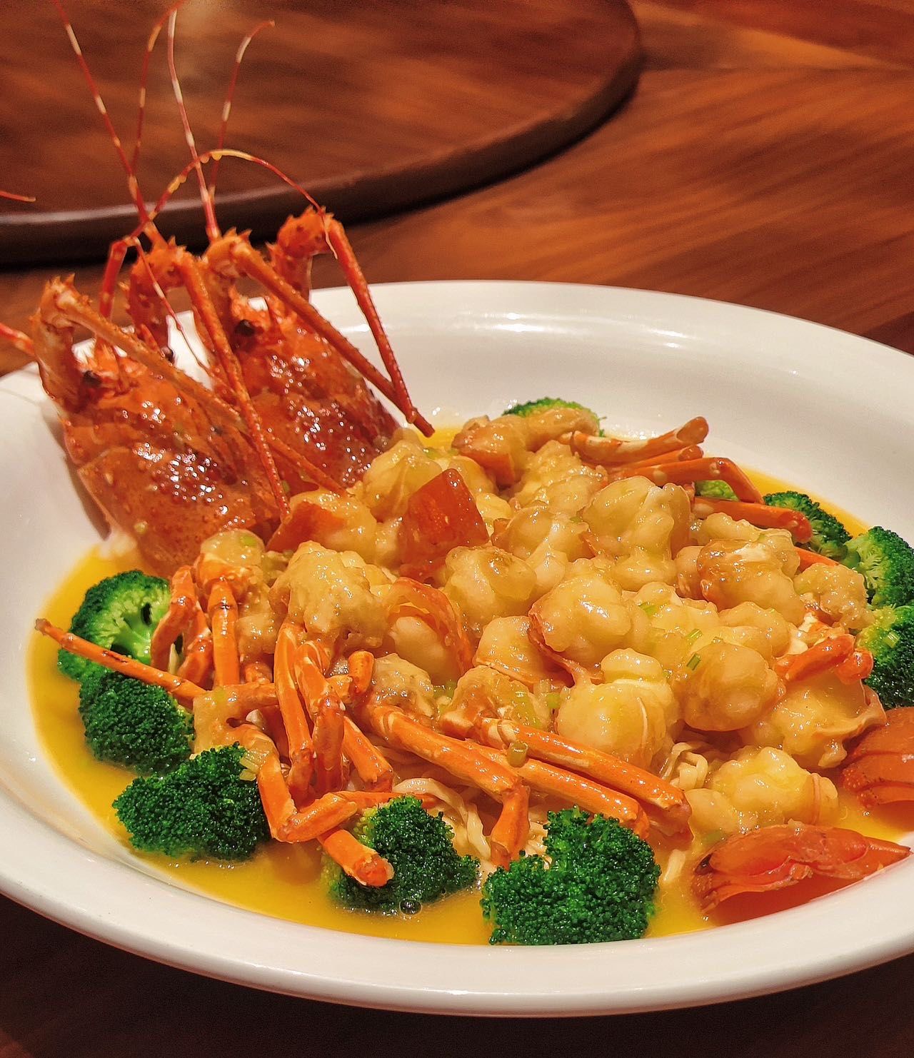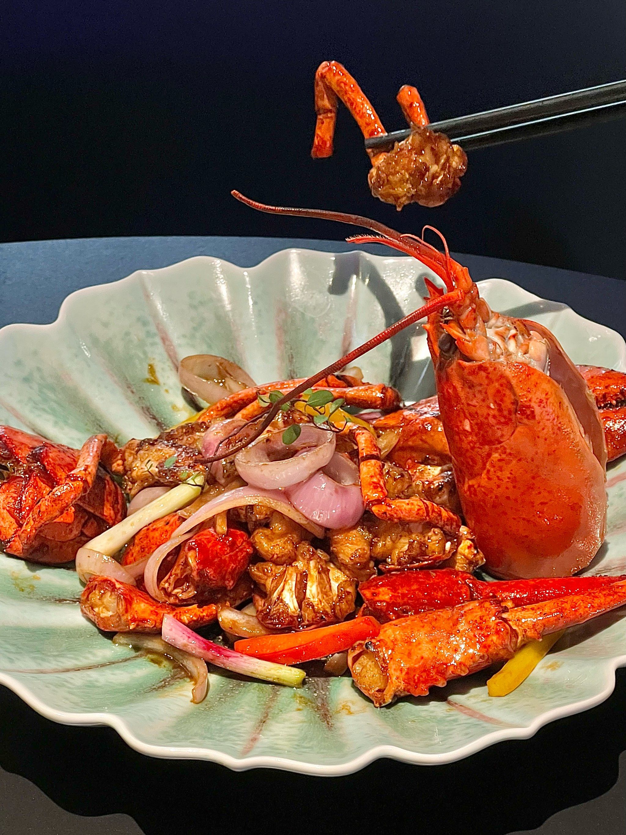 ③另起新锅,加入黄油化开,倒入上汤调味后放入炸好的龙虾,烧至入味,勾芡装碟即可。