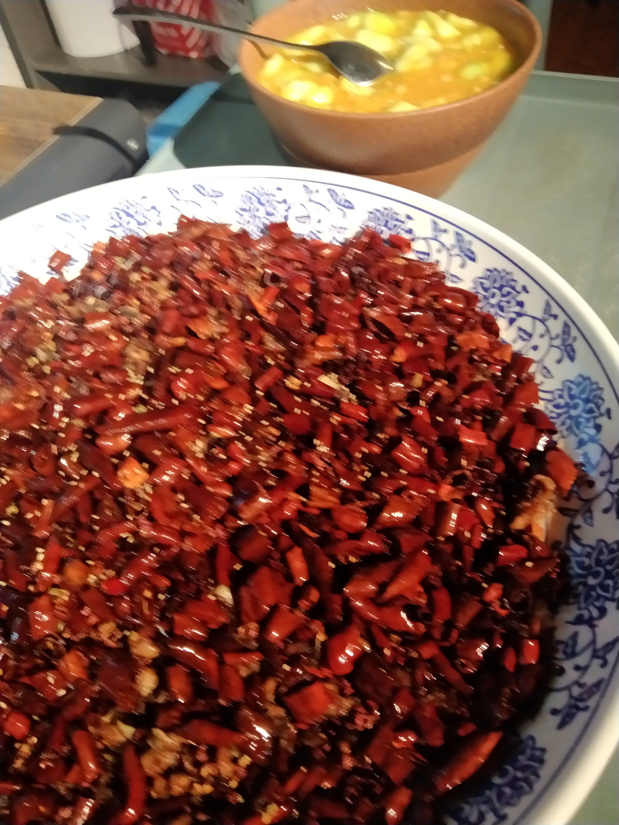 步骤 14 满满的一大盆吃够,实现辣子鸡自由,可以和朋友分享,剩下来的干辣椒可以舂好,做辣椒油
