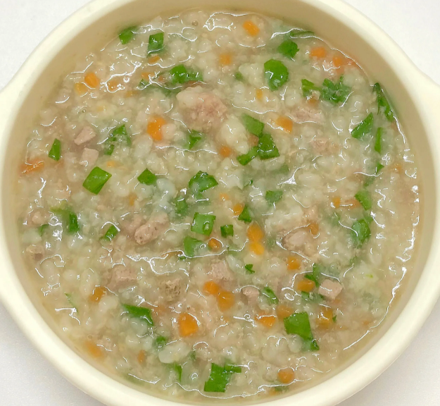 原料: 大米100克,猪瘦肉50-100克、适量香油(芝麻油)、盐