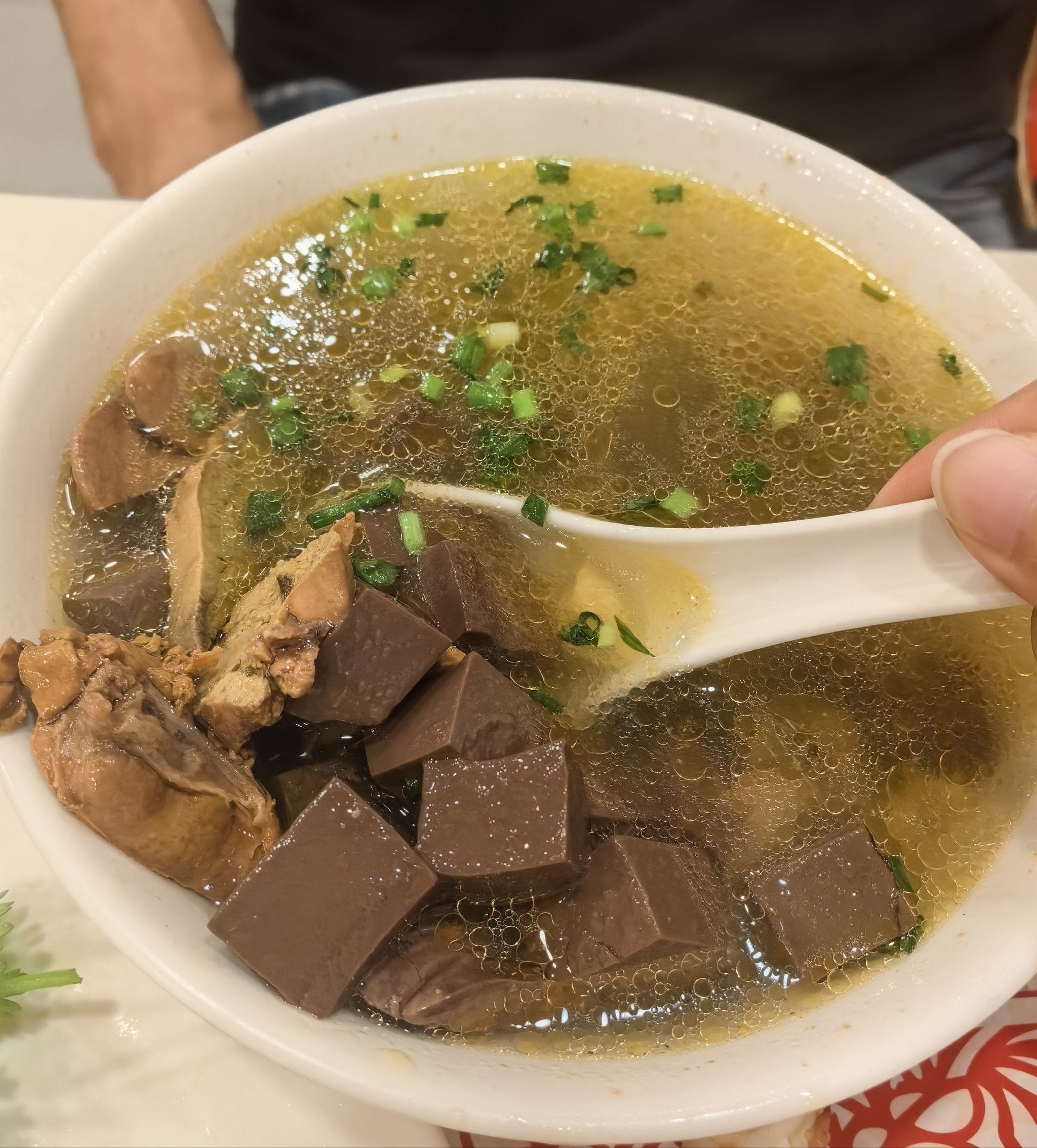 用料: 鸡汤 、 鸡血 、 嫩豆腐 、 大蒜叶(青蒜)、 黑木耳 、 盐 、 香油