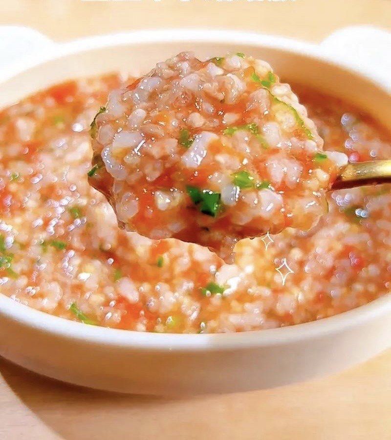 4倒入大米粥和适量开水一起煮开,凉温后即可喂食