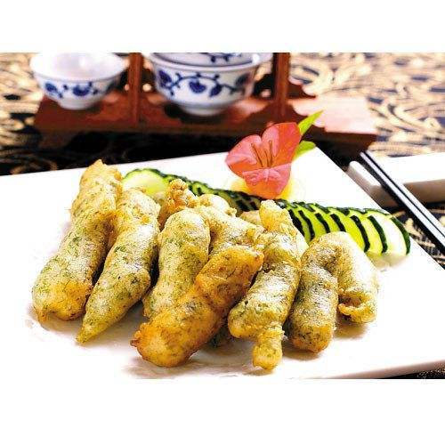 用料: 小黄鱼10条、 面粉、 泡打粉、 苔菜一小撮、 料酒 油