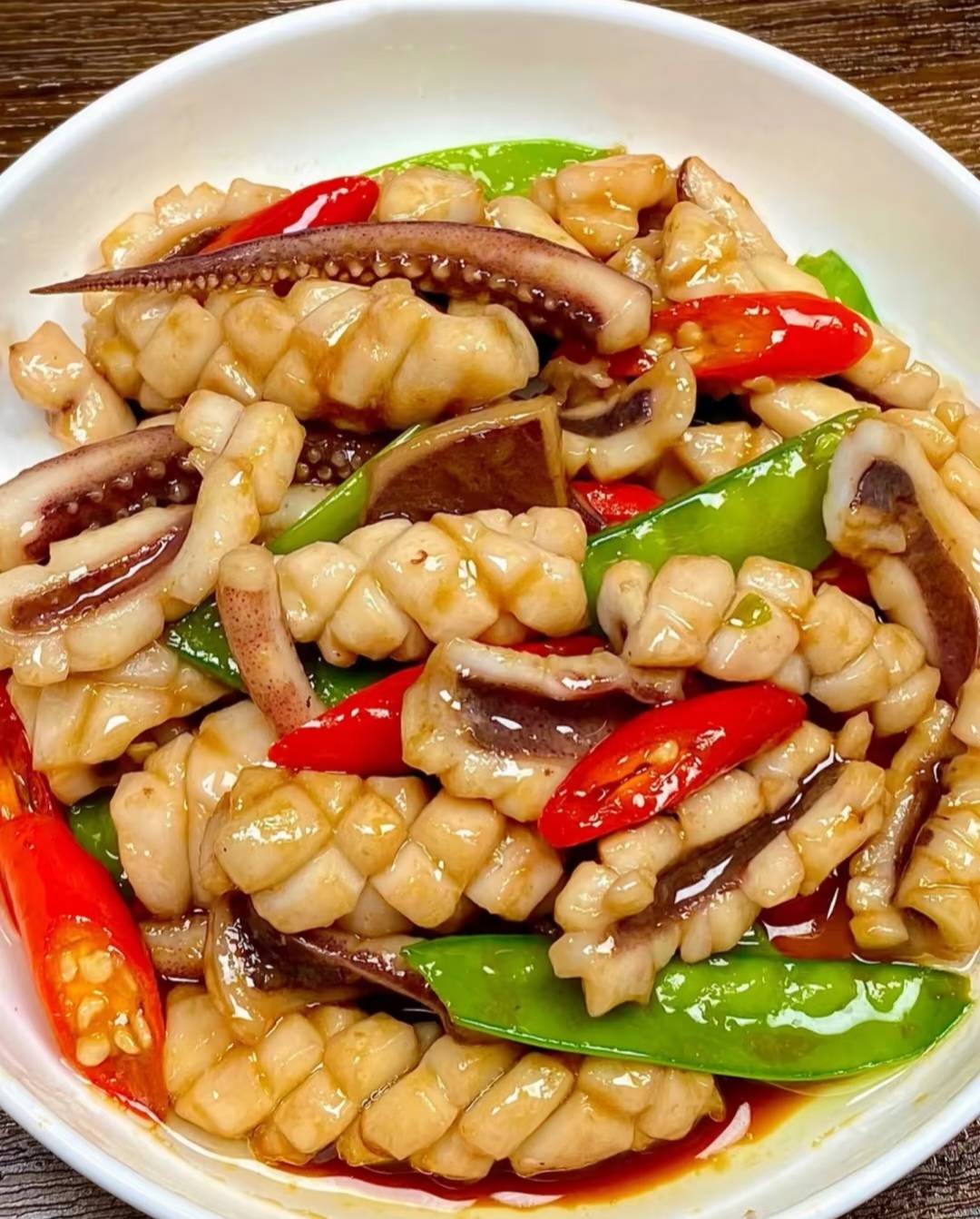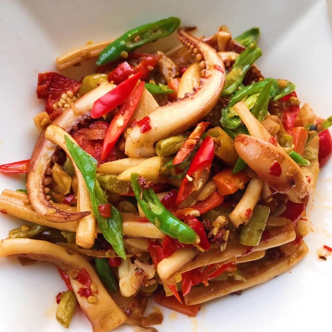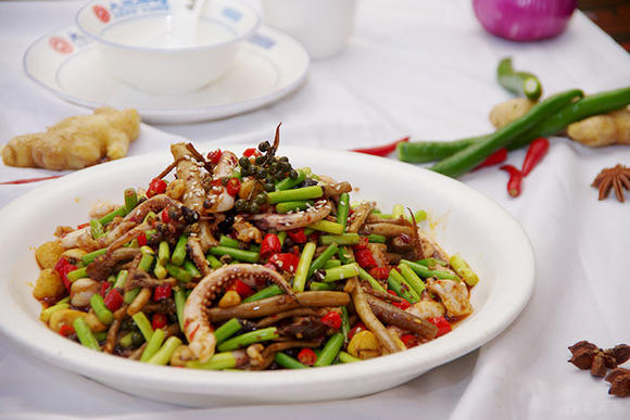 【油焖尖椒炒鱿鱼须】