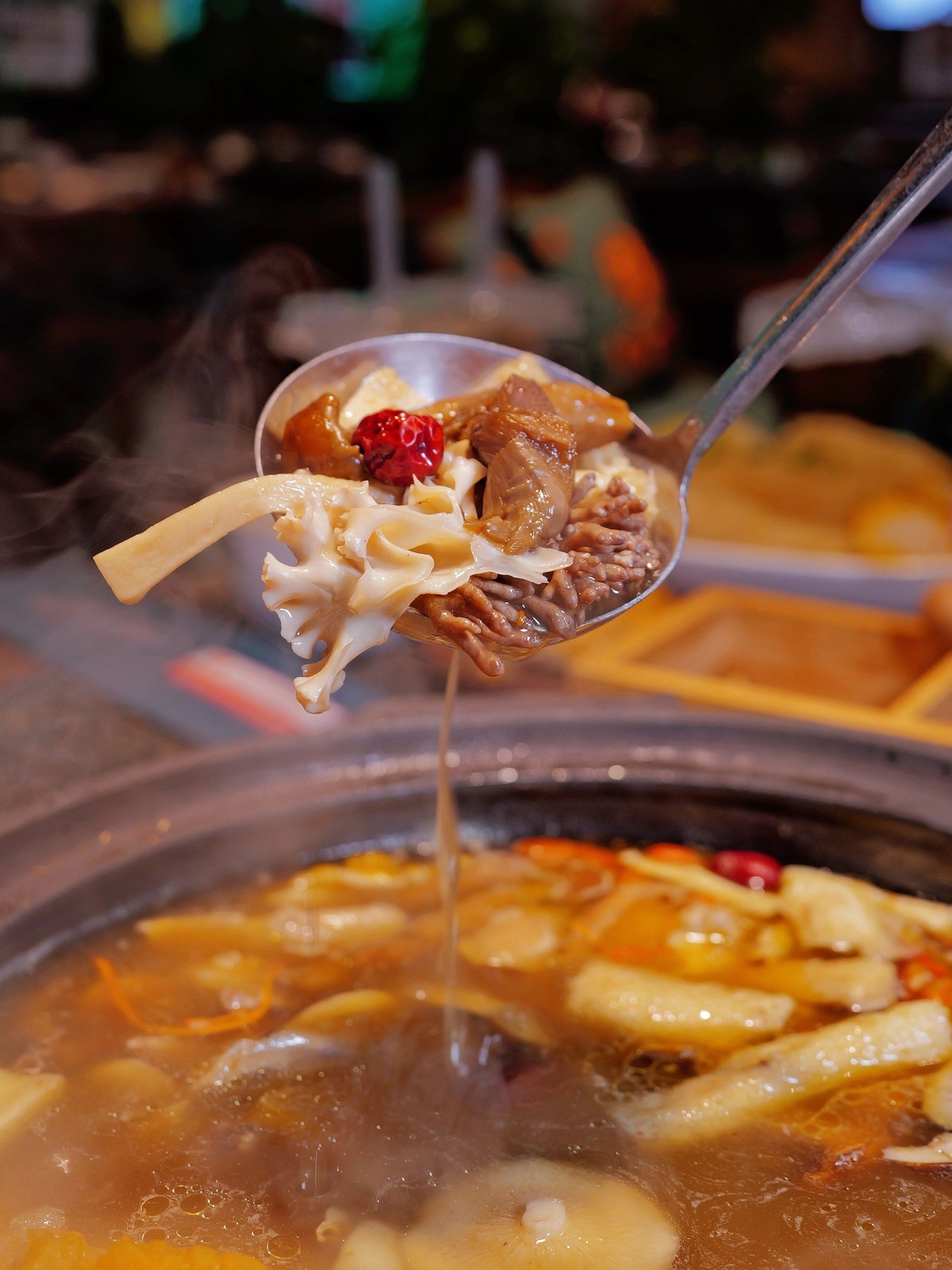 吃完后还可以加入自己烫菜,很是鲜美,喝一碗热汤很不错哦 烫菜可以再整一个拌料,就是麻辣味了
