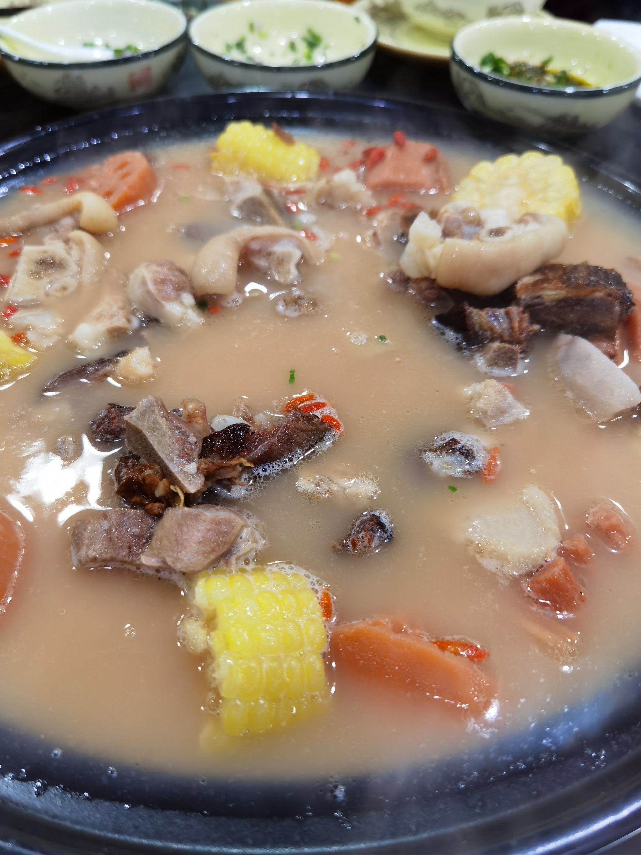 第1步、排骨和棒子骨,焯水以后。用小火熬白。里面除了花椒什么也不放。做成汤锅的高汤。