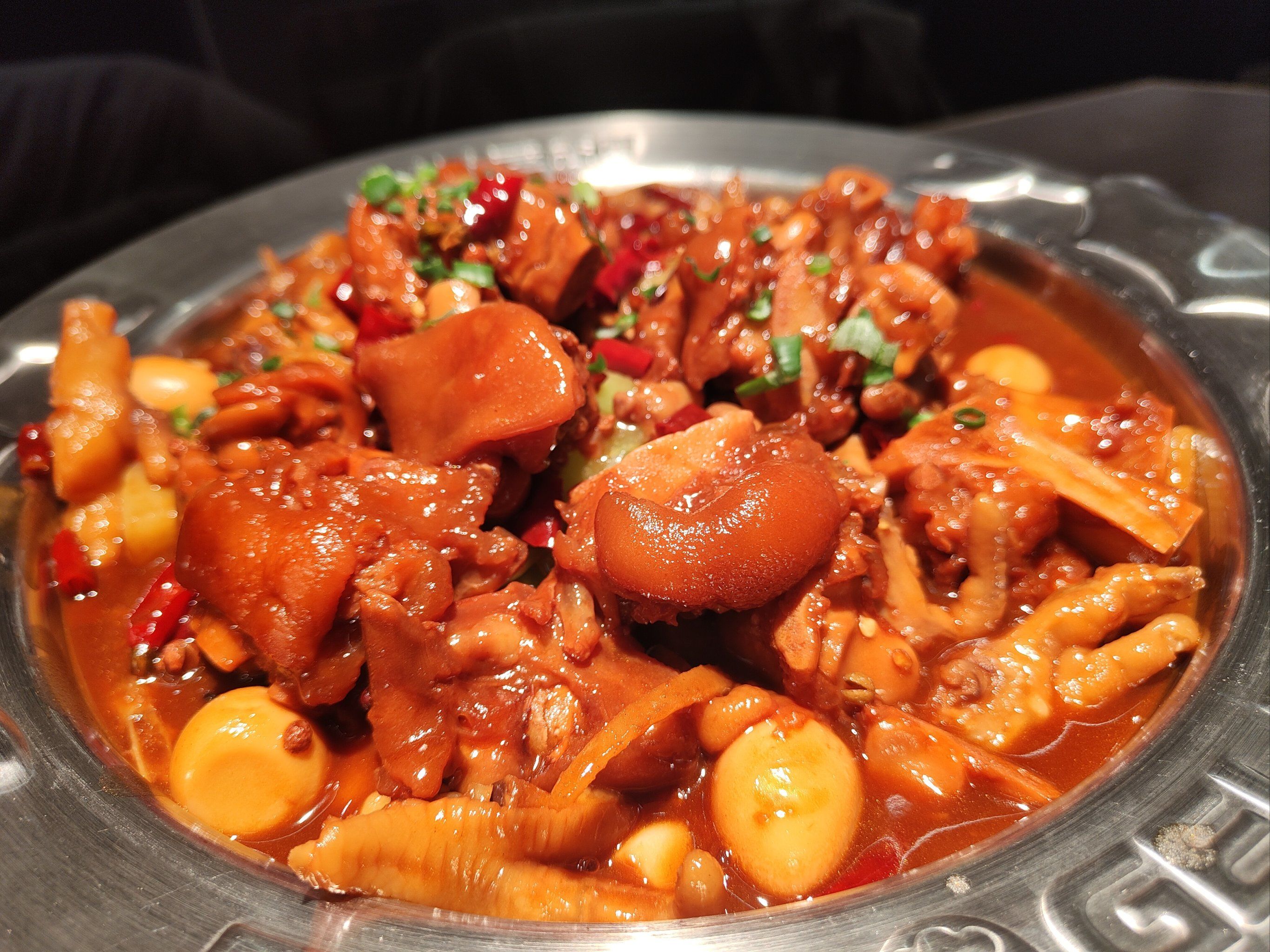 用低温煨炖: 将焯过水的猪蹄放回猪蹄汤锅中,加入高汤和配菜。用小火煨炖2-3小时,直到猪蹄变得非常柔软,汤汁也变得浓稠。在这个过程中可以根据需要加入适量盐和味精等调味品。