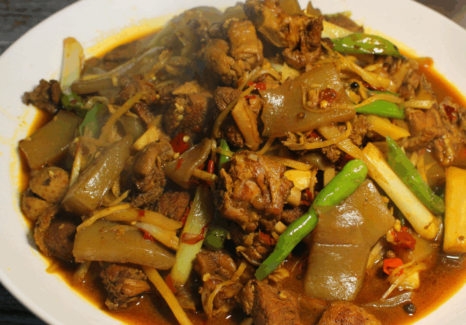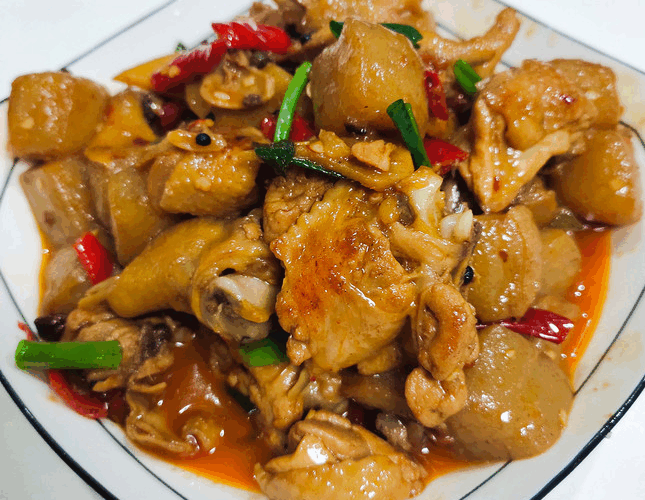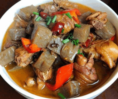 原料:魔芋、鸡腿、葱、姜、蒜、小米辣、杭椒、植物油、料酒、酱油、郫县豆瓣酱、大茴、麻椒、白糖、麻油。