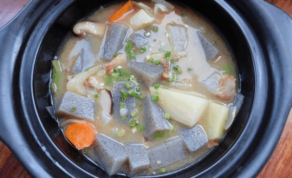 12.炖至鸭肉魔芋软烂,汤汁收浓,加盐调味即可。
