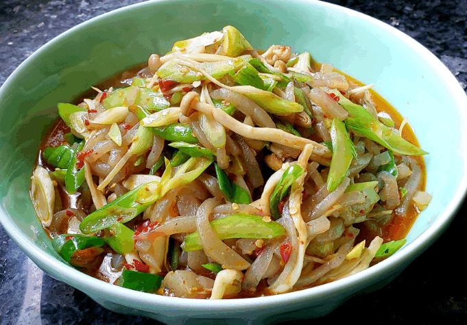 芹菜、蒜、辣椒、盐、鸡精、味精